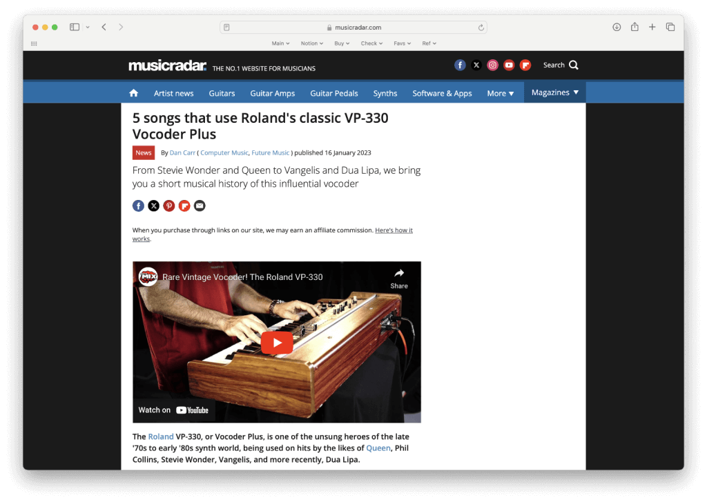 The article features plenty of audio examples recreating iconic VP-330 sounds to show how they were used in these tracks. It was a lot of fun researching and writing about such an influential synth—check out the full article on MusicRadar!