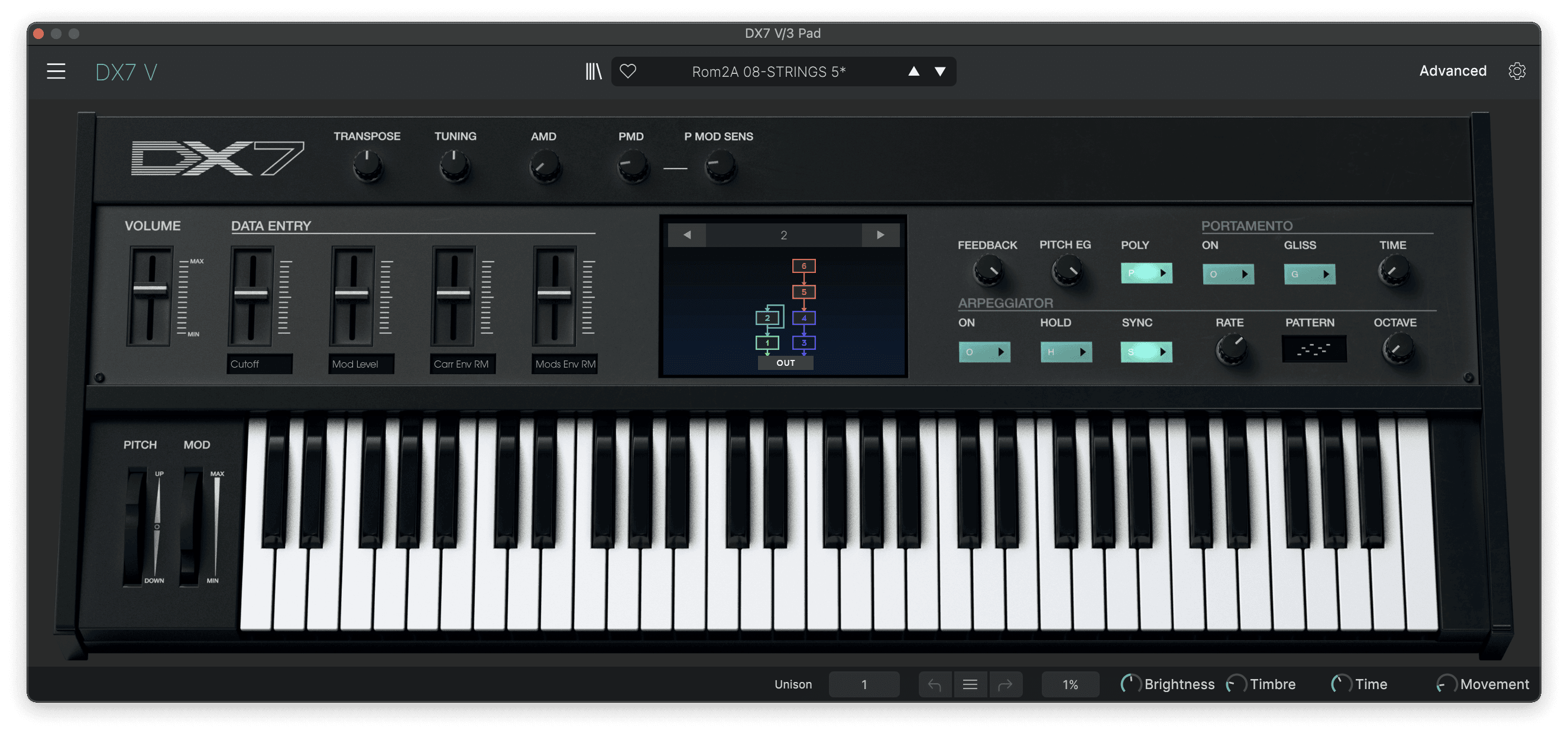 I used Arturia DX7 V for my remake. The pad in Ageispolis is slightly out of tune, it’s flat by around 25 cents in relation to the bassline and melody. Richard might have adjusted his DX7’s master tuning to make it flatter, which would explain this. I replicated this using DX7 V’s global tuning knob at the top of the interface.