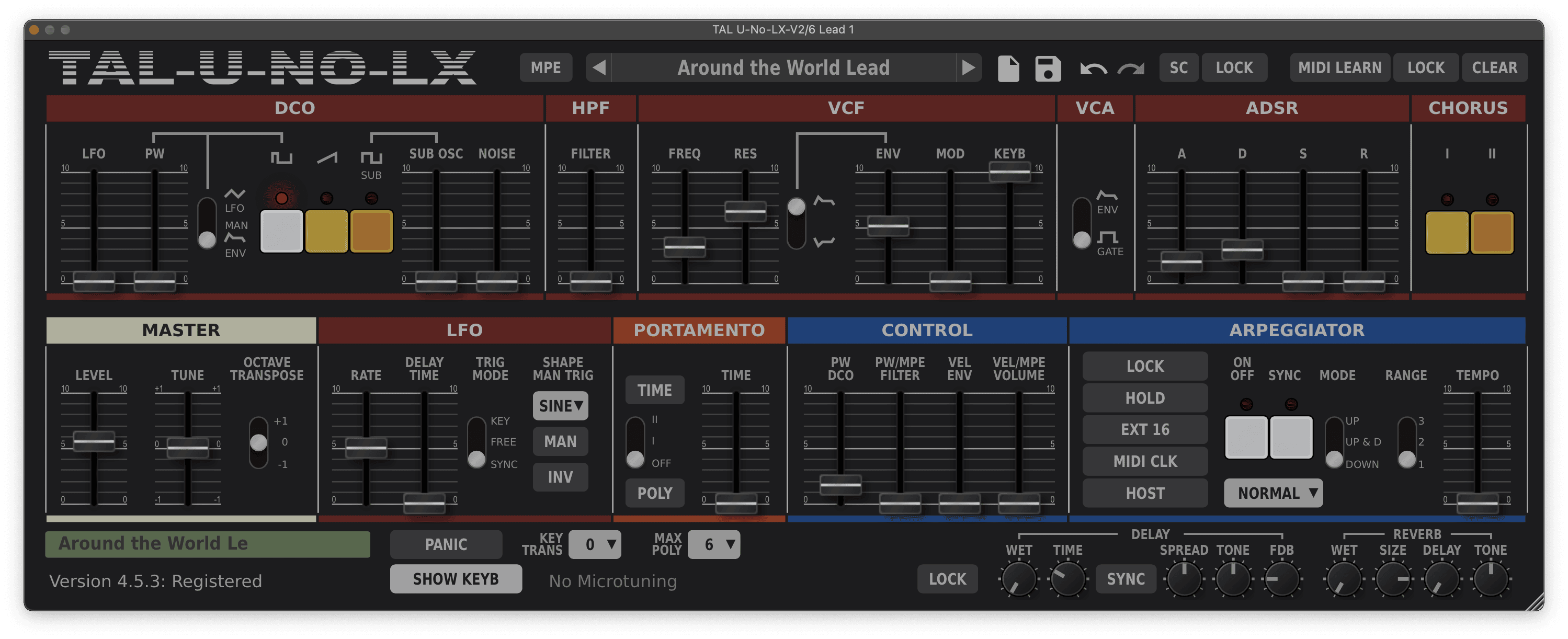 Four funky lead sounds play throughout Around the World, with two only appearing during the outro. The main synth lead is a bouncy lead that uses high filter resonance and a synced delay effect to create a funky, rhythmic effect.