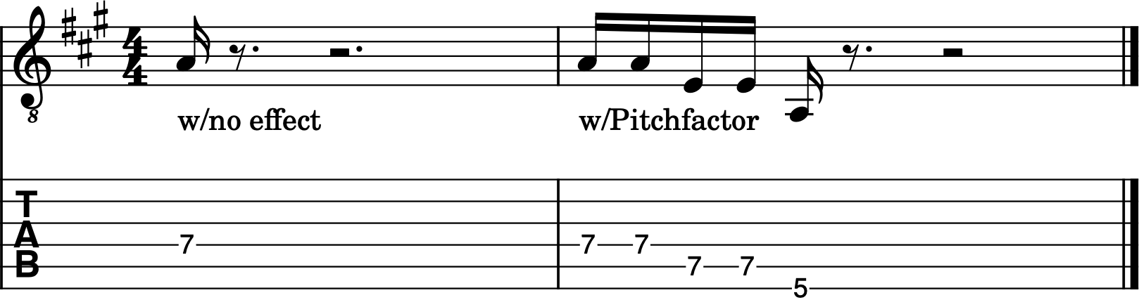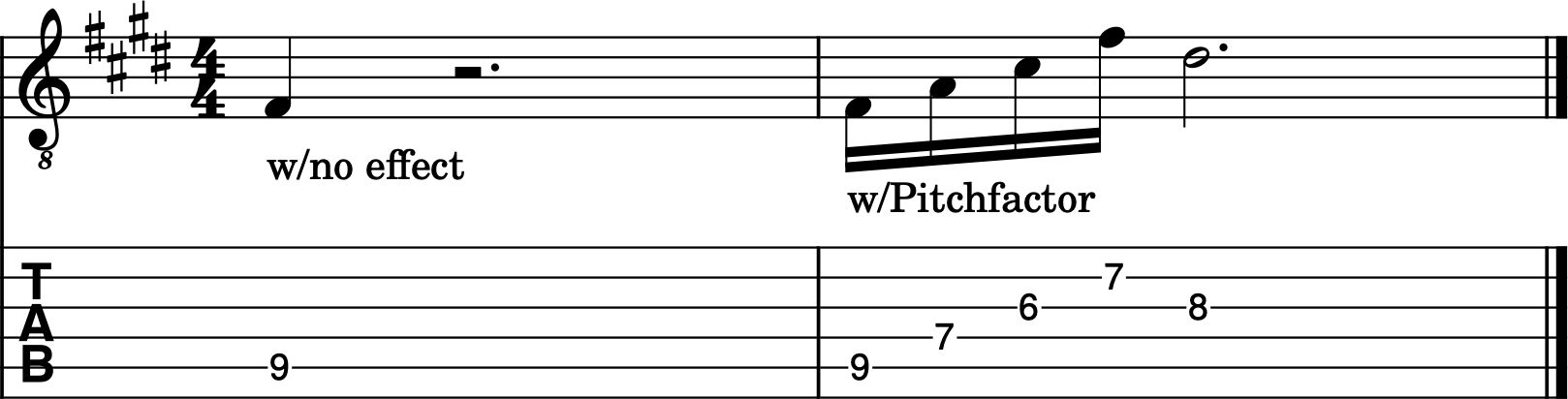 As you can see, the Pitchfactor adds a cool descending sequence that repeats notes and adds a chromatic descending fourth (-5 semitones) as well as a lower octave of the played note (-12 semitones).