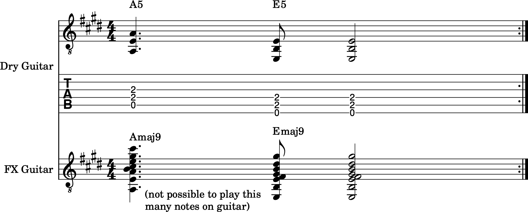With all those harmonies I would have never guessed the dry riffs would be so simple. Very inspiring. Grade-A post.