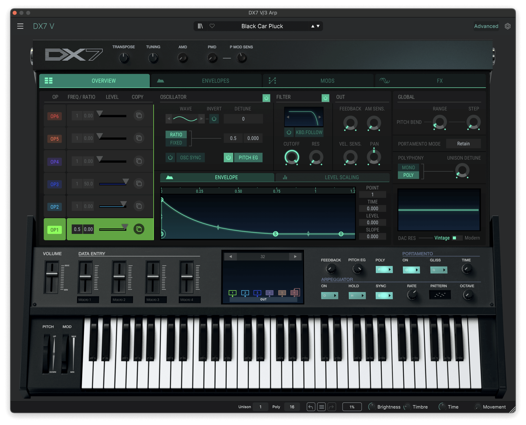 To create the arpeggio synth patch you’ll need a synthesizer capable of producing at least three sine waves, which rules out most analog synths. In my original remake I used Serum, but for this update I wanted to make the patches entirely for the Arturia V Collection, so I used Arturia DX7 V, which is a great source for sine waves. That said, I don’t think Beach House used a DX7 on the original recording.