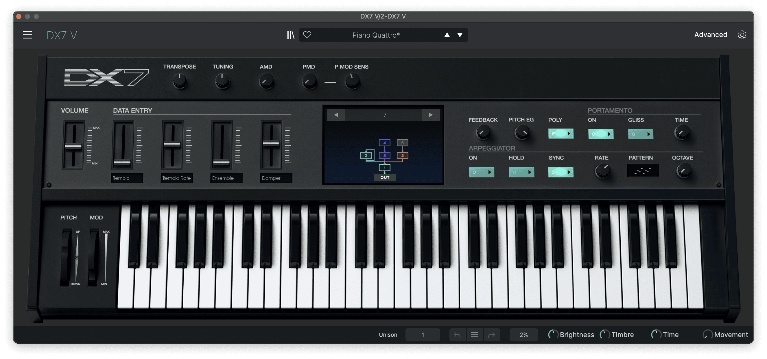 The DX7 V preset Piano Quattro sounds similar to the Almeda patch. The patch already has a light chorus effect, but you can improve the sound by raising the mix amount or even just running it through another chorus effect after the plugin. I used Ableton’s Chorus with Dry/Wet set to 35%.