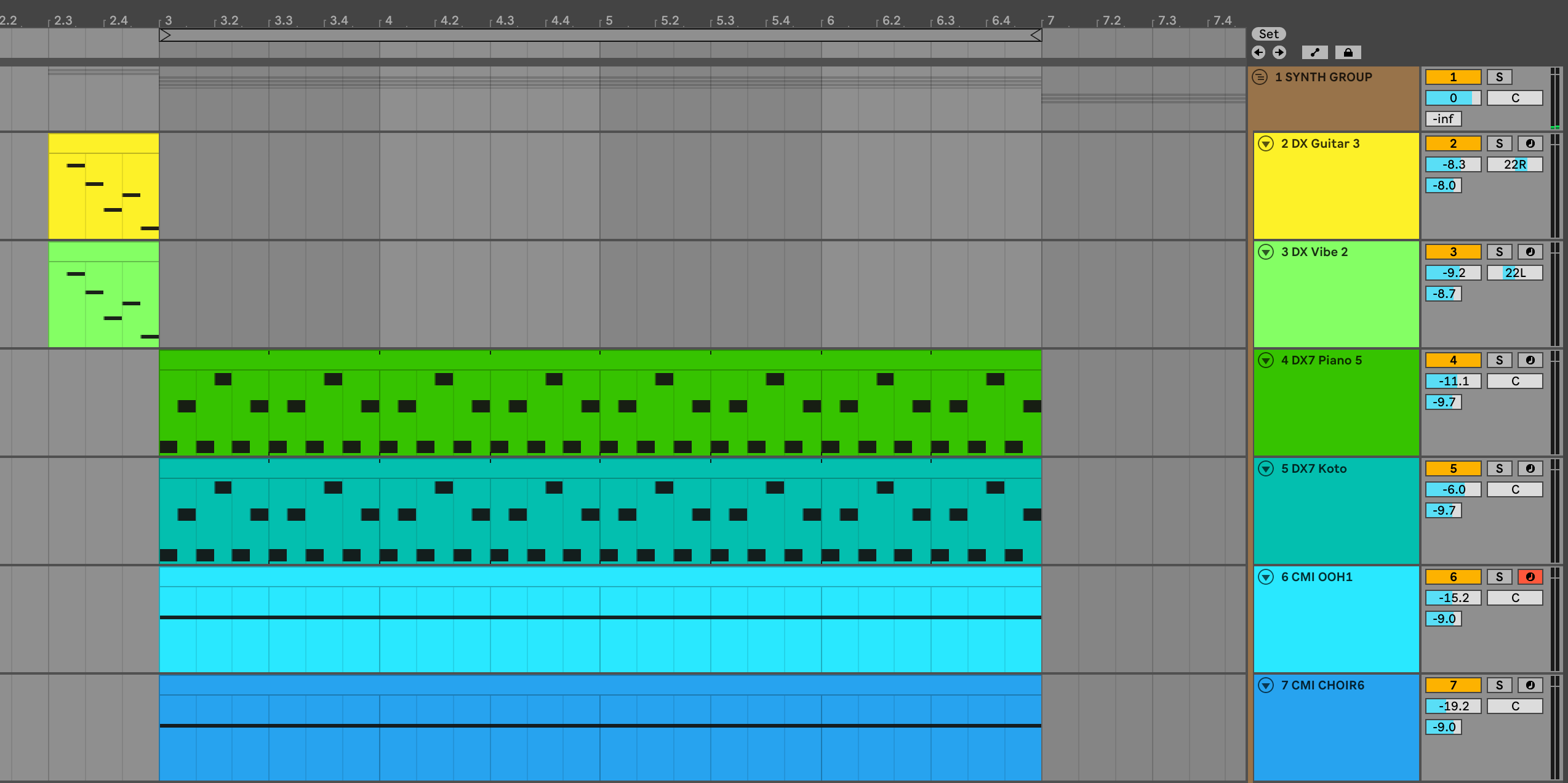 The DX7 preset used is ROM1B 32-BASS 4, a bright, punchy bass sound that is also velocity-sensitive—meaning the dynamics of the performance affect the tone. In my Ableton project, I’ve set the velocity to the maximum MIDI value of 127, which closely matches the attack and consistency heard on the record.