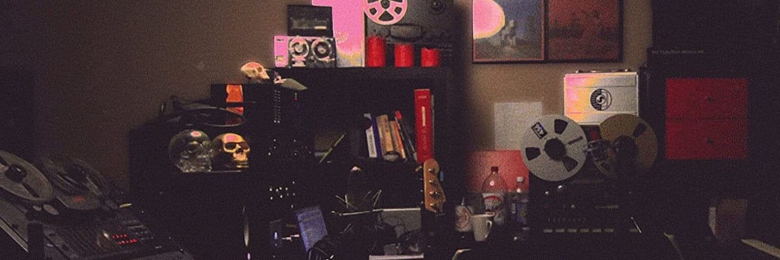 Tape affects its signal source in many different ways, such as compression, saturation and the recolouring of music’s tone. Higher input levels can be used to increase the amount of compression and saturation. The cover of 2015’s Multi-Love is a photo of Nielson’s basement studio, prominently showing two Fostex Model 80s, with one being hooked up to a Chandler Mini Rack Mixer.