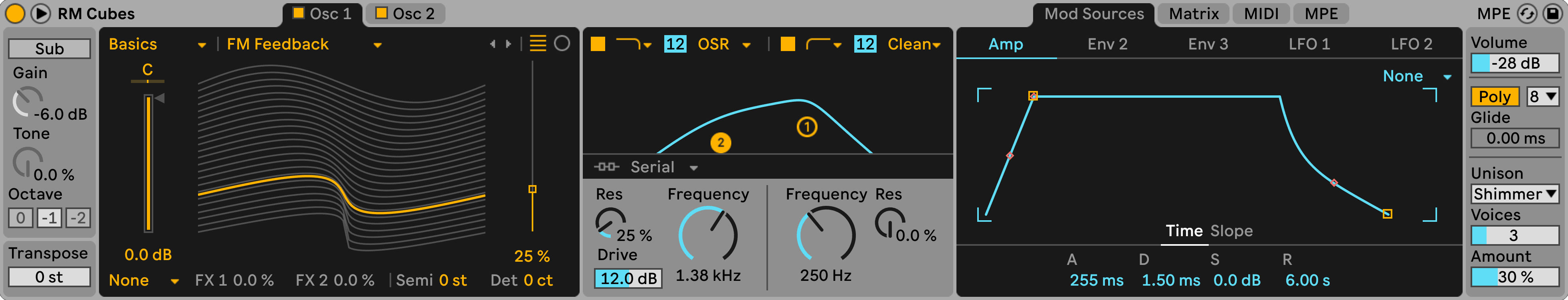Focusing on both timeless synth sounds and avant-garde, modulated soundscapes, this preset pack offers a wealth of expressive possibilities. Each preset is designed to respond dynamically to expression controls like the modulation wheel and aftertouch, allowing you to customize the sounds to fit your own style. Each patch includes detailed notes accessible in Ableton’s Info View, explaining the modulation routings available to shape the sound.