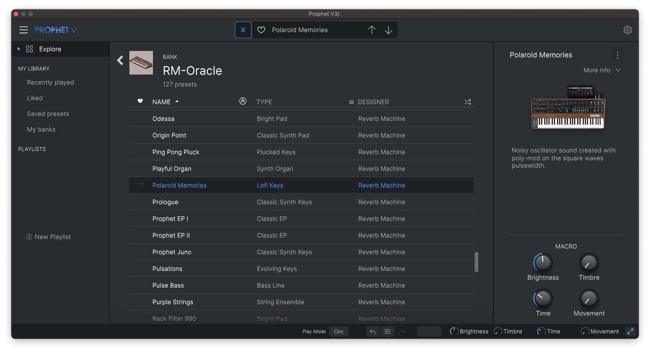 To use the Oracle presets, you will need to already own either Arturia Prophet V3 or Arturia Analog Lab V.